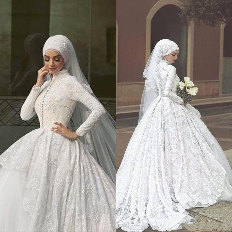 Acheter Luxe Musulman Balle Robe De Mariee Robes Manches Longues Col Haut Recouvert De Robes De Mariee Avec Dentelle Appliques Pour Midwest Pakistanais Abaya Ba9286 De 117 33 Du Bestoffers Dhgate Com